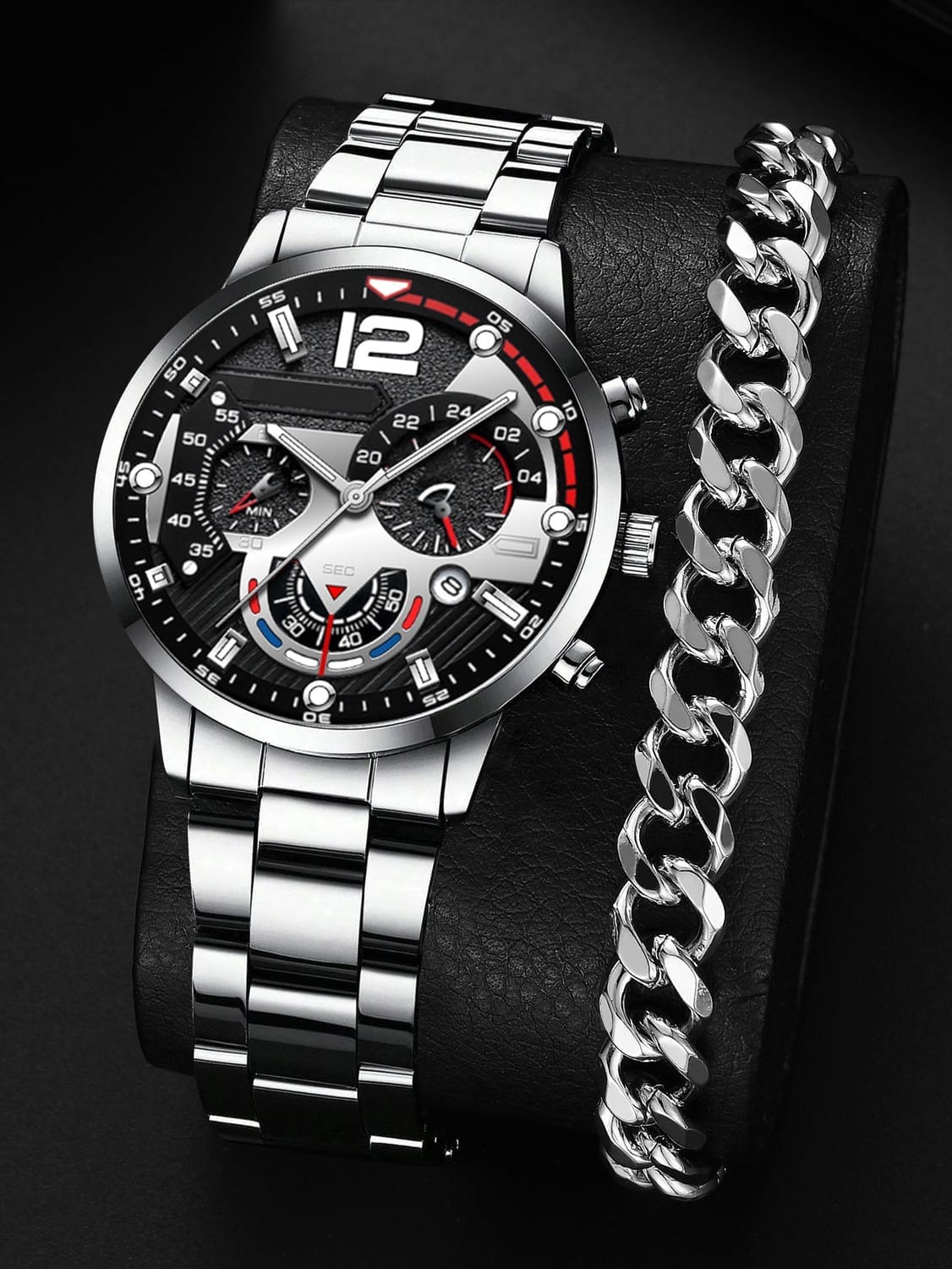 Montres à quartz + bracelet en acier, pour hommes