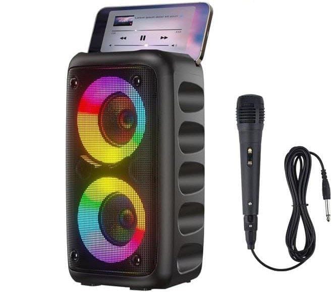 Microphone de karaoké professionnel avec lumières RVB et batterie rechargeable amovible, machine à chanter sans fil portable pour soirée à domicile