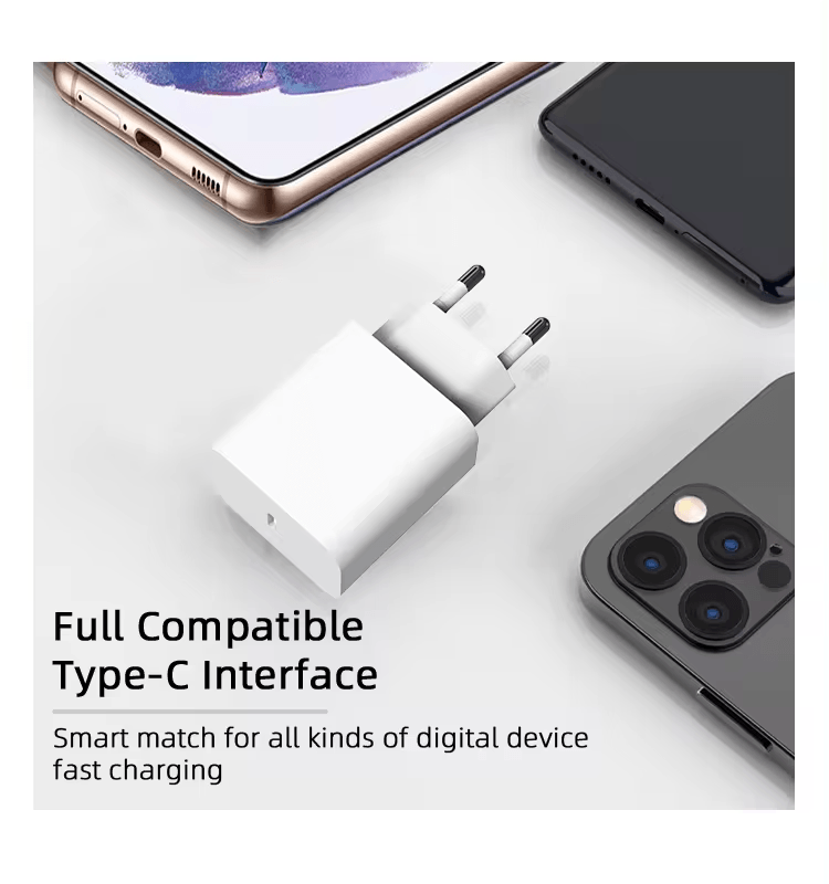 Ce chargeur Type-C offre une charge rapide de 20 W pour iPhone et Samsung, avec de multiples protections contre les surintensités, les courts-circuits, les surtensions et les basses tensions. Il prend en charge les normes PD 3.0 et QC 3.0 avec une entrée CA universelle de 100 à 240 V. Certifié LVD, ETL, EMC et CE, il garantit la conformité aux normes de sécurité internationales, garantissant ainsi un accès au marché et une fiabilité optimale.