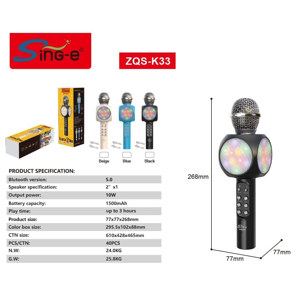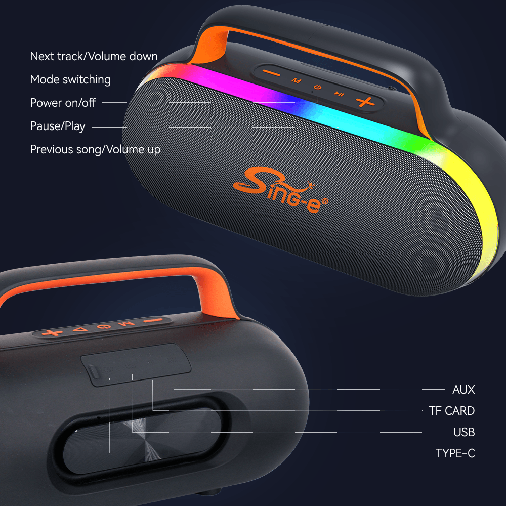 Microphone de karaoké professionnel avec lumières RVB et batterie rechargeable amovible, machine à chanter sans fil portable pour soirée à domicile