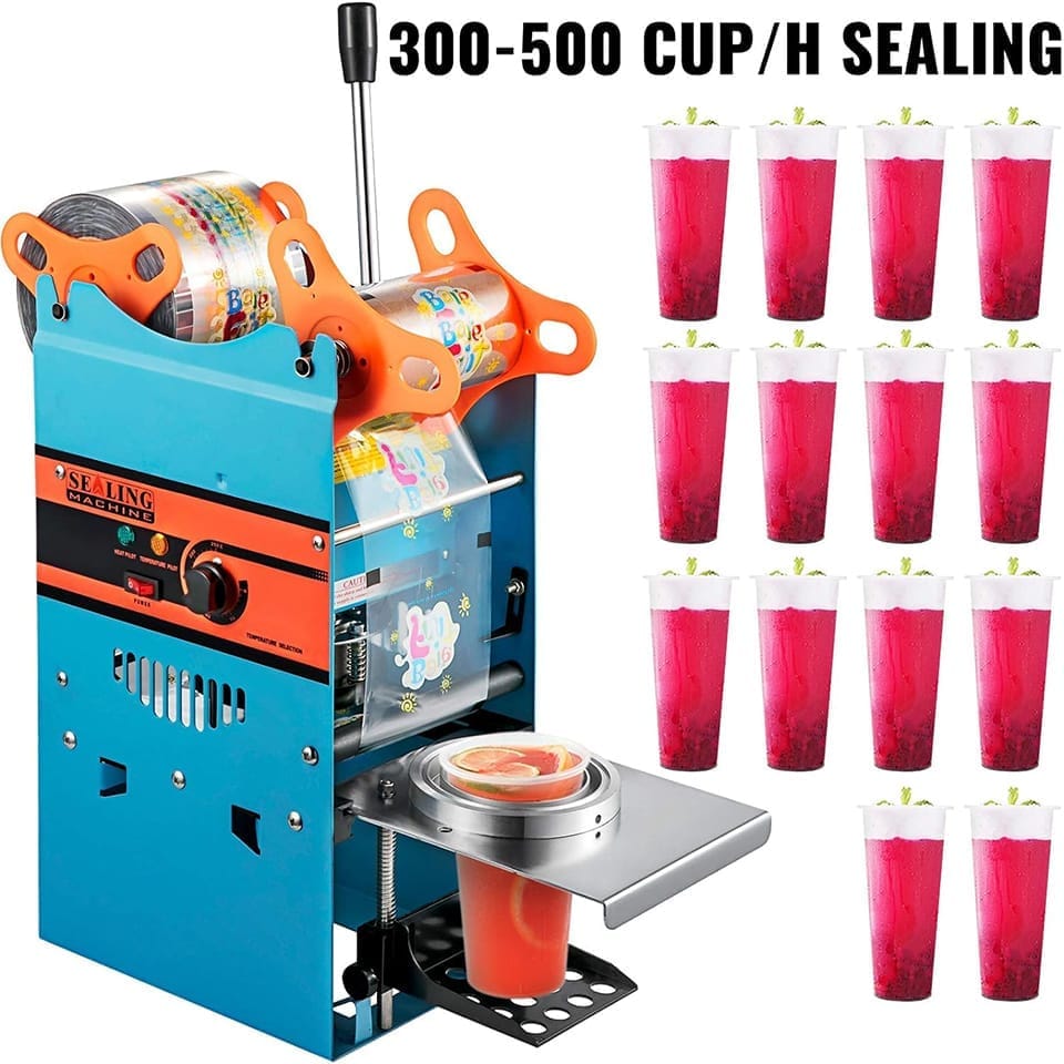 Machine à sceller les gobelets Boba WY802F, machine à sceller les gobelets Boba en papier plastique, machine à sceller les gobelets Boba 90/95 mm, capacité de 300 à 500 gobelets/heure.