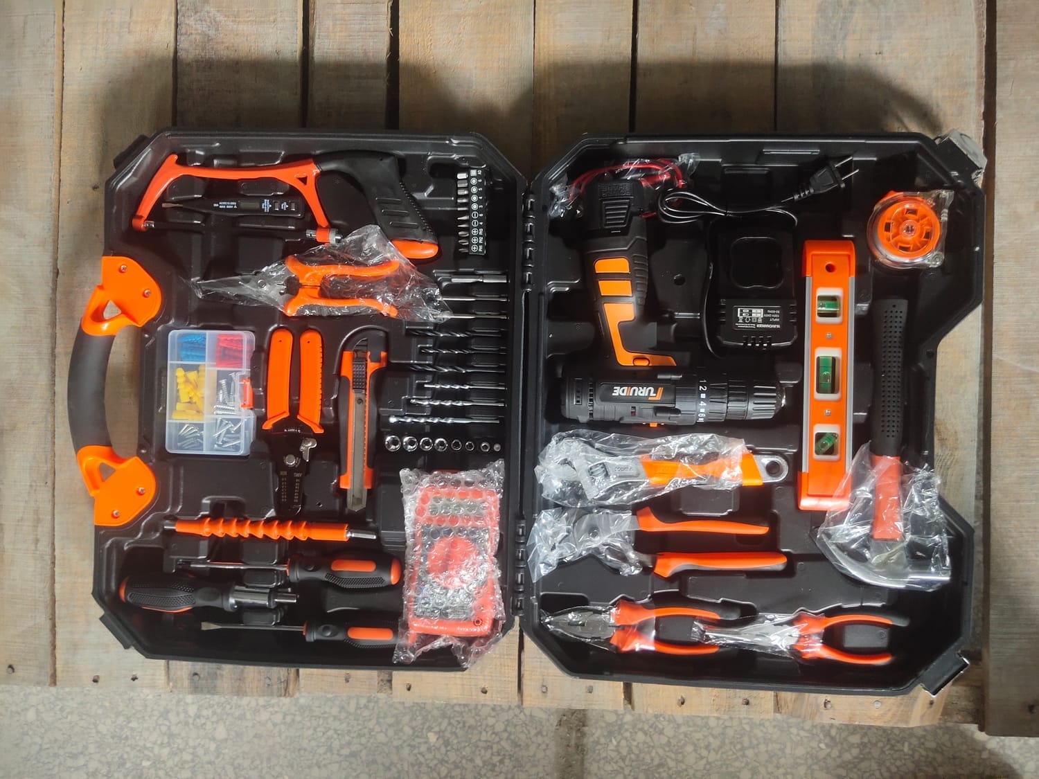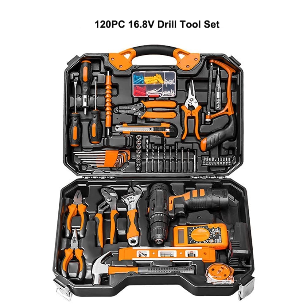 Ce coffret de 120 pièces comprend une variété d'outils électriques sans fil, tels que des perceuses, des clés et des tournevis, tous fabriqués en acier inoxydable durable. Conçu pour la réparation automobile et l'entretien ménager, il est certifié CE et conforme aux normes de sécurité européennes