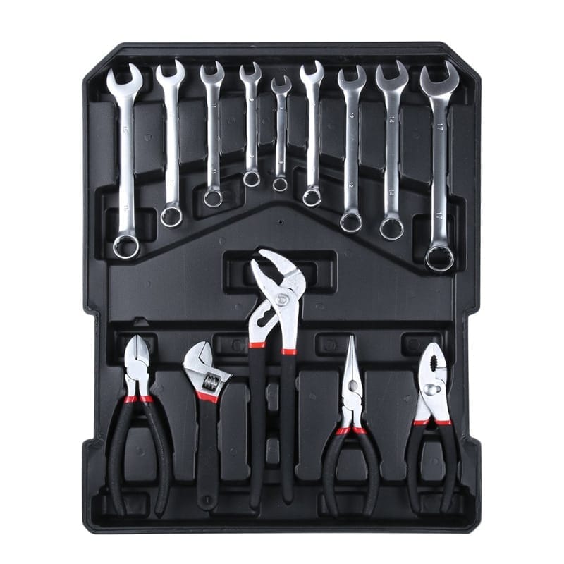 Ce coffret d'outils portatif de 186 pièces offre un ensemble complet d'outils en acier au carbone de haute qualité, comprenant des clés, des pinces, des tournevis, des douilles et bien plus encore, le tout organisé dans une valise à roulettes pour un transport et un rangement faciles. Certifié CE, il garantit la conformité aux normes de sécurité européennes.